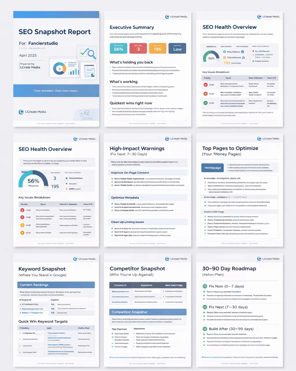 Yes. The SEO Snapshot Report is included in all of our SEO packages. Every new client starts with a Snapshot so we can clearly identify what is holding your site back, set priorities, and measure improvements over time. If you purchase the Snapshot as a one-time service, it can also be applied as the starting point before moving into a monthly package if you decide you want ongoing support.