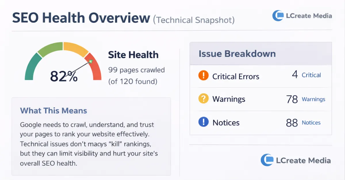 Search engines need to discover and crawl your pages to rank them. If key pages are not being crawled or are hard to access, they may not show up in search results consistently.